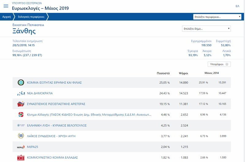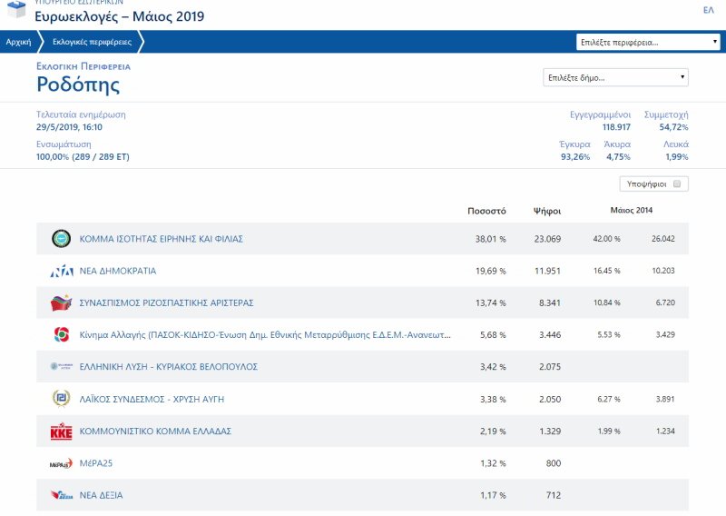 - Το KIEΦ σε Ροδόπη και Ξάνθη, ήρθε πρώτο με 38.1% και 25.5% αντίστοιχα, επί του συνόλου των ψηφοφόρων στις Ευρωεκλογές, κατακτώντας την πρώτη θέση, ενώ ακολουθούν, η Νέα Δημοκρατία και μετά ο ΣΥΡΙΖΑ.
